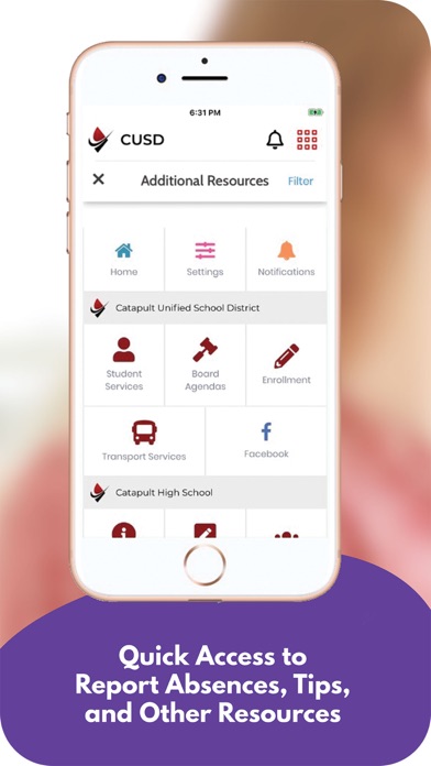 The app includes information for the district and all schools. Filter by the school your child attends to feature information for that school. Key information includes: • Announcements • Contact Details • Staff Directory • Event Calendar Additional resources may be provided by the district or school, such as: • bus routes • board agendas • lunch menus • Aeries & MySchoolBucks login links • sports information • and more