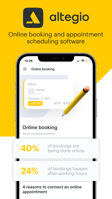 Altegio is an online scheduling solution for service-based businesses. With Altegio your clients can choose to book appointments through your website, social networks, messengers, and more. All while you use Altegio to manage staff, their schedule, send notifications to your clients, perform inventory management and accounting. Altegio is a management solution for appointment-based businesses trusted by 5,000+ companies around the world. Altegio makes employee management easier and faster, allowing for more control over your business. SCHEDULE — Manage and adjust your schedule on the go: book, rearrange or cancel appointments; — Browse appointments in our calendar app. Filter display by business branch or by staff member; — Control access display access. Each employee may be restricted to only see their bookings; — Get instantly notified about new appointments. CLIENT DATABASE — Full access to clients’ visit history; — Initiate phone calls right from your clients’ profile cards; — Notify clients about upcoming appointments, special offers or cancellations (push, SMS or email). Batch notifications available. — Automate birthday greetings with SMS, instant messages or push notifications to show your clients you care. PERFORMANCE ANALYTICS — Track your business performance: revenue, employee efficiency and more. Analyse data daily, or cumulatively over a preferred period. — Monitor multiple business branches, switch between data sets, track business development of each unit. PAYMENTS AND LOYALTY PROGRAMS — Accept bonus coupons, seasonal discount tickets, or loyalty cards from your clients; — Track payments live. Administrators can see how much the client owes, if the visit is not paid in full. MANAGE FINANCES AND INVENTORY — Generate detailed reports by branch or individual employee; — Manage supplies you have in stock, and control how much you need per customer visit, or if you need to restock. Use the Altegio booking app as a scheduling and appointment solution for your business. Set up the Altegio planning calendar widget on your phone or tablet. Altegio is a great schedule and appointment management app that helps you save some time for yourself, while making your work easier and your business more profitable.