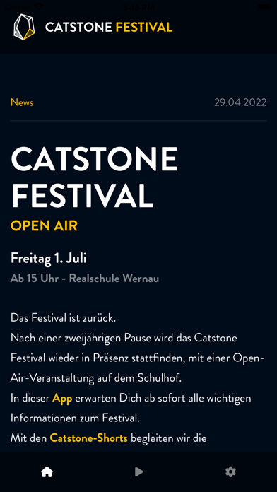 Mit der Catstone Festival App erhältst Du alle Informationen rund um das Festival direkt auf Dein Smartphone. Du erhältst auf Wunsch Benachrichtigungen zu neuen Videos und Inhalten.