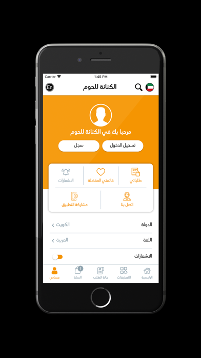 Al Kinanah Kw application is the e-store to deliver your fresh meat. To buy from the app: open it, then click on the wanted category. You will be able to see all the available products, start adding what you wish for to your cart. Continue the ordering process by filling the wanted information to have your order like: the preferable payment method and the delivery information. تطبيق الكنانة للحوم هو المتجر الإلكتروني الذي سيوصل لك اللحوم الطازجة. وللشراء من التطبيق: ادخل إلى التطبيق والنقر على التصنيف المرغوب. ستستطيع عندها رؤية جميع المنتجات المتوفرة، ابدأ بإضافة ما تريده إلى عربة تسوقك. ثم أكمل عملية الطلب بإضافة المعلومات المطلوبة لتحصل على طلبك مثل: طريقة الدفع المناسبة ومعلومات التوصيل.