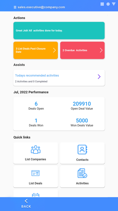 Ask any sales person their experience of using CRM software tools and the likely answer is that it is the most time consuming and difficult part of their sales process. Most will also tell you that CRMs are data black-holes. They cost a significant amount of time and effort and most often don’t give any useful data in return. Assistive was born to invert this paradigm. Our CRM assists sales teams achieve greatness by helping them win more deals in less time. It makes adoption effortless through easy, intuitive and automated data collection. Key Features Assistive is the perfect companion on the move for any sales person. While providing all standard functionality expected from an enterprise class CRM solution, it is unique in three key ways. 1. Assists Assists help sales teams close more deals in less time, by providing customer, opportunity, time, location and context sensitive assists. It helps to do the right things, at the right time for the right opportunity. 2. Field First Assistive can be deployed for any sales team or industry, but its best use is for field sales teams who run high-velocity sales processes. The mobile user experience makes data input frictionless, and location and time aware features make sales teams more efficient and productive. 3. Infinitely Configurable Assistive is designed from the ground-up to meet the most complex enterprise use cases through its configurability not customizability. With Assistive, big customization budgets and long delivery timelines are a thing of the past. Sales organizations can instead better use their mega budgets for sales team incentives.