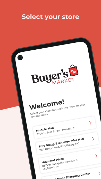 Download our Buyer’s Market app now to find major deals on your favorite brands! Let us help you find the BEST deals in-store! It's super simple to use: Price Your Deals: 1. Select your Store 2. Scan the QR code on your deal 3. Find out what you save Store Locator: Find a store near you and start saving today! Who We Are: We purchase overstock, bankruptcies, customer returns, out of season goods, and much more from major retailers and manufacturers! We pay less and pass those savings to you! What We Carry: We carry name brand clothing, shoes, housewares, bed and bath linens, electronics, seasonal merchandise, and more. Our merchandise changes daily, so be sure to stop in often! New Merchandise & Markdowns: Our team fills the sales floor with new merchandise daily! As new merchandise flows in, you'll find markdowns happening throughout the store! What's here today may be gone tomorrow, so scan the deal when you find it! Contact us: URL: https://www.buyersmarkets.com/ Facebook: https://www.facebook.com/buyersmarketstores Instagram: https://www.instagram.com/buyersmarketstores/