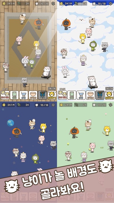 세상 귀엽고 힙한 냥이들을 모아봐요! 복잡한 거 싫으신 분! 손쉽게 개성넘치고 재미있는 냥이를 모으고 싶으신 분! 마냥 붙잡고 있지 않아도 돼요. 부담없이 가끔 와서 귀여운 냥이들 만지작 거리기만해도 좋은 게임! 아이들이 하기에도 부담없는 게임! 32마리를 모두 모으면 두둥! 엔딩도 있답니다~
