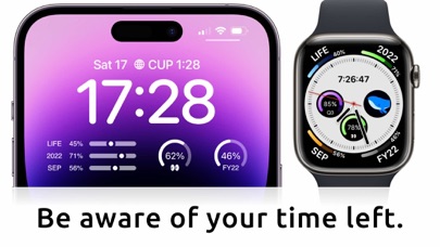 Are you aware of what percentage of your life has passed? This year? This month? It is a simple app which allows you to make gauges of your lifespan, this year, and this month as well as 10 custom time gauges. Their label names and colors can be customized and used as Apple Watch Complications and lock screen Widgets on your iPhone. Stay motivated by constantly visualizing the passage of your precious time on your lock screen or Apple Watch. # Features - Preset gauges for life, year, and month - Create up to 10 custom gauges - iPhone lock screen Widgets - Complications / widgets for Apple Watch # Widget or Complication enabled devices - iPhone with iOS 16.0 or later. - Apple Watch with watchOS 9.0 or later. Some classical complications only display preset gauges (life, year, month).