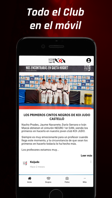 Koi Judo. Todo el club en tu móvil. Mantente siempre informado y consulta en cualquier momento la información más importante, tus partidos, equipos y las últimas novedades. Con nuestra app podrás disfrutar de: - Últimas publicaciones - Comentar y compartir - Vídeos - Fotos y álbumes - Partidos: horarios, cómo llegar, resultados, clasificaciones... - Equipos, plantillas, calendarios... - Y mucho más Además podrás recibir avisos y notificaciones en tu móvil con la información más importante y estar siempre al día. Koi Judo en todo momento contigo!