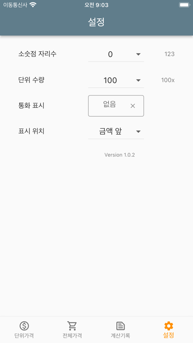 이 앱은 총 가격을 수량으로 나누어서 단위 가격을 계산 합니다. 단위 가격은 서로다른 수량의 상품을 살때 가격비교를 하기 쉽게 만듦니다. 나중에 보기위해 계산결과를 저장 할수도 있습니다. 이 앱은 무료이며 사용자 가입이 필요하지 않습니다