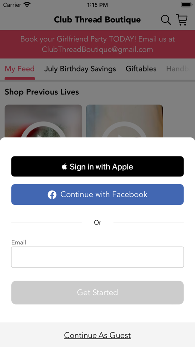 Welcome to the Club Thread Boutique App! The best way to shop with Club Thread Boutique on iOS! About Us: Features: - Browse all of our most recent arrivals and promotions - Easy ordering and checkout - Waitlist items and purchase them when they are back in stock - Email notification for order fulfillment and shipping