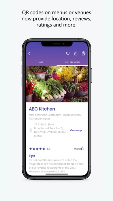 Fast, secure, and easy to use QR Code and Barcode scanner – FREE Download. QR Codes are everywhere - get to scanning today! Discover more about your favorite products, brands, restaurants, retailers and more today. Simply point scanner window over the QR Code or Barcode you want to scan and app will automatically display requested information. Updated features include: -New attractive user interface -Additional security feature alerts you when scanning an unsecured code -QR codes on menus or venues now provide location, reviews, ratings and additional information -Learn more about products’ nutritional facts and health score by scanning products barcodes -Browse new products and experiences scanned by other users -Saves scans in your History tab for quick reference to your favorite codes -Share with family and friends via text, WhatsApp, email, Facebook or Twitter -Decode all QR codes today: access contact details, URLs, phone numbers, email addresses, calendar event, and more -Supports all major barcodes and 2D code formats -Any questions? Contact us directly from the app Additional information: Scanlife works with third parties to collect certain non-identifying information about your interests, including aggregate level and/or anonymous information, to provide targeted advertising and analytics services on our application, or across other sites and other applications. These entities may use technologies to collect information about your use of our mobile applications, including device attributes such as: operating system, hardware version, device settings, IP address, time zone, device carrier, applications installed on the device, and device advertising identifiers. We may share and allow our third-party partners to share this non-identifying information with other third parties that perform targeted advertising activities across other apps and websites. Data collected from a particular device may be used on a different device linked to the device on which the data was originally collected. Any choice made by you regarding Scanbuy’s collection of data on one device will be reflected on the other device(s) linked to that device. You can disable this data collection at any time by choosing “Limit Ad Tracking” in your device settings.