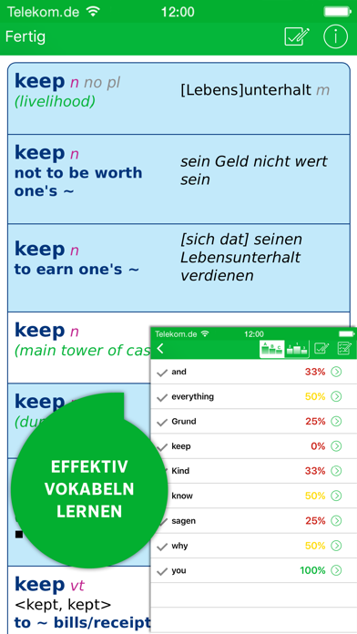 Das umfassende Wörterbuch mit 775.000 Stichwörtern, Wendungen und Übersetzungen. Sie sprechen in Ihrer Freizeit mit englischen Freunden? Sie lesen oder schreiben englische Texte aus verschiedensten Themenbereichen - privat oder auch beruflich? In Ihrem Berufsalltag haben Sie mit englischsprachigen Partnern Kontakt? Dann ist das PONS Wörterbuch Englisch - Deutsch ADVANCED für Sie die perfekte Hilfe! Sie können diese und alle weiteren PONS Wörterbuch Apps auch vor dem Kauf testen: Laden Sie sich dafür die kostenlose PONS Wörterbuch Bibliothek herunter. Zu den Inhalten • Beide Übersetzungsrichtungen (Deutsch-Englisch und Englisch-Deutsch) • Aktueller, umfassender Wortschatz mit rund 315.000 Stichwörtern und Wendungen und mehr als 460.000 Übersetzungen • Mit Kontextbeispielen, Informationen zum Sprachgebrauch und vielen grammatischen Informationen • Mit amerikanischem, australischem sowie österreichischem und schweizerischem Wortschatz • Mit Infokästen zu Land & Leuten, Grammatik, Typischen Fehlern sowie Formulierungshilfen Was kann die App? • Diese Applikation funktioniert 100% offline. • NEU! Optimiertes Multitasking auf dem iPad (iOS 10): Mit „Slide Over“ eine zweite App nutzen, ohne die erste verlassen zu müssen. Mit „Split View“ zwei Apps gleichzeitig öffnen und nutzen. So können Sie z. B. im Wörterbuch nachschlagen, während Sie E-Mails lesen oder Nachrichten schreiben. • NEU! 3D Touch-Unterstützung: Auf dem iPhone ein Stichwort leicht antippen und mit „Peek“ eine Vorschau vom Wörterbucheintrag erhalten. Durch Antippen des Icons der PONS Wörterbuch App das Menü mit den wichtigsten Wörterbuch-Funktionen öffnen („Quick Actions“) und direkt zur ausgewählten Funktion im Wörterbuch gelangen. • NEU - für sehbehinderte und blinde Menschen! Bildschirmlesefunktion „VoiceOver“ einschalten und ausgewählte Funktionstasten und Elemente der Wörterbucheinträge vorgelesen bekommen. • Direkt nachschlagen: Im Safari einfach einen Text markieren, auf den Weiterleiten-Pfeil tippen und das Wörterbuch auswählen. Nun werden alle Wörter des Textes angezeigt, die Sie nachschlagen können. • Nachschlagen aus anderen Anwendungen: Einzelne Wörter oder ganze Sätze in die Zwischenablage kopieren, zurück zur Wörterbuch App wechseln und unkompliziert einzeln alle Wörter nachschlagen. • Vokabeln lernen: Wörter, die Sie lernen möchten, definieren Sie als Vokabelkarte. So lernen Sie Vokabeln schnell und effektiv! • Grundwortschatz spielerisch trainieren: Mit den Lernspielen PONS Memo, PONS Kombinator, Wortschlange, Buchstabensuppe und PONS ProfiTest. • Vorgesprochen von Muttersprachlern können Sie sich zahlreiche Stichwörter anhören und die Aussprache üben. (Für die Sprachen: Deutsch, Englisch, Französisch, Spanisch, Italienisch, Russisch) • Mit der Volltextsuche finden Sie bequem Beispielsätze. Über PONS: Seit über 30 Jahren entwickelt PONS grüne Sprachlernmaterialien fürs Leben: vom klassischen Wörterbuch und der Grammatik über Audio- und Software-Sprachkurse bis hin zu kostenlosen Online-Angeboten. http://www.pons.de www.facebook.com/PONSverlag © sborisov - Fotolia.com