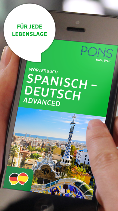Das große Wörterbuch mit 575.000 Stichwörtern, Wendungen und Übersetzungen. Sprechen Sie in Ihrer Freizeit mit spanischen Freunden? Lesen oder schreiben Sie spanische Texte - privat oder auch beruflich? Haben Sie In Ihrem Berufsalltag mit spanischsprachigen Partnern zu tun? Dann ist das PONS Wörterbuch Spanisch für Sie die perfekte Hilfe! Zu den Inhalten • Beide Übersetzungsrichtungen (Deutsch - Spanisch und Spanisch - Deutsch) • Aktueller, umfassender Wortschatz mit rund 235.000 Stichwörtern und Wendungen und mehr als 340.000 Übersetzungen • Mit Wortschatz von der Allgemeinsprache bis zur modernen Fachsprache • Mit Kontextbeispielen, Informationen zum Sprachgebrauch und vielen anderen wichtigen grammatischen Informationen • Mit dem länderspezifischen Wortschatz aus Lateinamerika, Österreich und der Schweiz • Mit Infokästen zu Kultur, Land und Leuten • Mit Lautschrift nach IPA Was kann die App? • Diese Applikation funktioniert 100% offline. • Optimiertes Multitasking auf dem iPad: Mit „Slide Over“ eine zweite App nutzen, ohne die erste verlassen zu müssen. Mit „Split View“ zwei Apps gleichzeitig öffnen und nutzen. So können Sie z. B. im Wörterbuch nachschlagen, während Sie E-Mails lesen oder Nachrichten schreiben. • 3D Touch-Unterstützung: Auf dem iPhone ein Stichwort leicht antippen und mit „Peek“ eine Vorschau vom Wörterbucheintrag erhalten. Durch Antippen des Icons der PONS Wörterbuch App das Menü mit den wichtigsten Wörterbuch-Funktionen öffnen („Quick Actions“) und direkt zur ausgewählten Funktion im Wörterbuch gelangen. • Für sehbehinderte und blinde Menschen! Bildschirmlesefunktion „VoiceOver“ einschalten und ausgewählte Funktionstasten und Elemente der Wörterbucheinträge vorgelesen bekommen. • Direkt nachschlagen: Im Safari einfach einen Text markieren, auf den Weiterleiten-Pfeil tippen und das Wörterbuch auswählen. Nun werden alle Wörter des Textes angezeigt, die Sie nachschlagen können. • Nachschlagen aus anderen Anwendungen: Einzelne Wörter oder ganze Sätze in die Zwischenablage kopieren, zurück zur Wörterbuch App wechseln und unkompliziert einzeln alle Wörter nachschlagen. • Vokabeln lernen: Wörter, die Sie lernen möchten, definieren Sie als Vokabelkarte. So lernen Sie Vokabeln schnell und effektiv! • Grundwortschatz spielerisch trainieren: Mit den Lernspielen PONS Memo, PONS Kombinator, Wortschlange, Buchstabensuppe und PONS ProfiTest. • Vorgesprochen von Muttersprachlern können Sie sich zahlreiche Stichwörter anhören und die Aussprache üben. • Mit der Volltextsuche finden Sie bequem Beispielsätze. Über PONS: Seit vielen Jahren entwickelt PONS grüne Sprachlernmaterialien fürs Leben: vom klassischen Wörterbuch und der Grammatik über Audio-Sprachkurse bis hin zu kostenlosen Online-Angeboten. www.pons.de www.facebook.com/PONSverlag www.instagram.com/pons_gmbh © Mapics - Fotolia.com