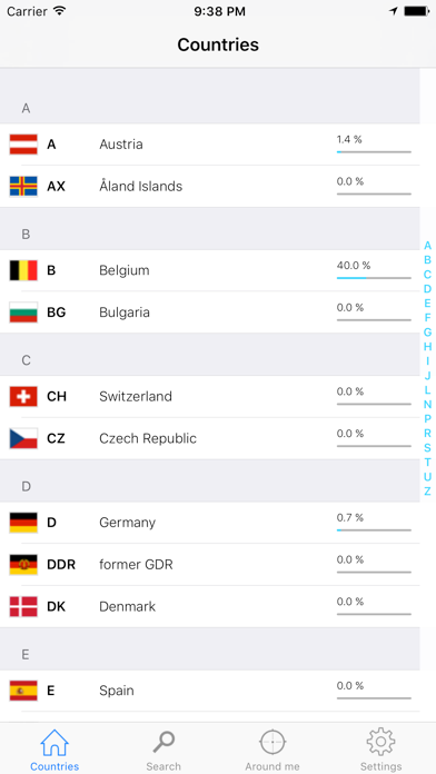In many countries - especially in europe - you will find a special character combination on a license plate that tells you where a car is coming from or gives other informations about the car. LicensePlate comes with car license plate shortcuts of several countries, from which you can choose very fast and intuitive (see country list below). It shows informations about the region where a car is registered and links to the maps application, so that you can see on the map where the car is coming from and use the maps application to let it show you the way to that specific location. A global full text search or simple search for plate keys is another part of LicensePlate. Once you've spotted a plate you can mark it and build up your collection of plates you've seen on the street. This application is ideal for longer road trips. Be sure to have an answer when your kids play a License Plate quiz again... and hey, i like that Pub quiz idea...! Countries: Austria, Switzerland, Germany, France, Great Britain, Italy, Ireland, Norway, Poland, Greece, Czech Republic, Northern Ireland, Spain, Lithuania, Slovakia, Croatia, Romania, former GDR, Japan, Turkey, Ukraine, Slovenia No regional informations, basics: Belgium, Denmark, Luxembourg, Netherlands, Sweden, Latvia, Hungary