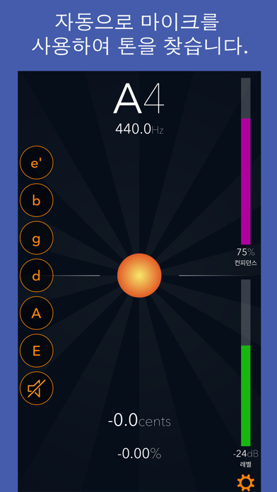 악기를 튜닝이 반음계 튜너와 피치 파이프를 사용합니다. 그것은 기타,베이스 기타, 밴조 및뿐만 아니라 다른 많은 악기뿐만 아니라 튜닝, 심지어 당신의 목소리와 함께 (단지 그것으로 노래!). 내장 된 피치 파이프는 귀로 튜닝 기준 음을 연주 할 수 있습니다. 튜너는 개인 정보 보호 정책> 마이크의 설정 응용 프로그램에 부여 할 수있는 마이크 액세스를 필요로한다. 최상의 결과를 위해, 헤드셋 또는 장치에서 별도의 마이크를 사용합니다. 특징 • 자동으로 마이크를 사용하여 피치를 찾습니다. • 주 이름, 옥타브, 주파수. • 센트와 비율의 선명도 또는 평탄도. • 편집 가능한 A4 기준 주파수. A440 표준 튜닝 (A4 = 440Hz로). • 12-음에 해당하는 평균율 조율. • 업사이드 다운으로 디스플레이를 회전할 수 있습니다. • 피아노, 일반 기타, 전기 기타, 베이스 기타 및 다른 악기 상에서 실제 음들이 테스트 되었습니다. 투나 피치(Tuna Pitch)는 Lucius Kwok 및 Kasten Searles이 만들었습니다.