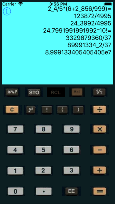 Our calculator does mixed fractions & decimal arithmetic with support for brackets. This covers most of the work you need to do with fractions but we also record the results to a "paper tape" which you can scroll to review (with the ability to select and copy) and you also can email it to yourself so you can see and record the sum of your labours. For example you can enter 5 3/16 + (12.11 - 1/8)*2 = to get the answer 11663/400 which you can then show as 29 63/400, or 29.1575 Or calculate 2^151 "2 to the power of 151" to get 2854495385411919762116571938898990272765493248 Remember swipe left/right to DELETE the number, line, or tape. Yes you can enter 5--1_3/4 to say 5 minus the NEGATIVE fraction 1 3/4 Check the rating and reviews, who makes the better fraction calculator in the store, we do!