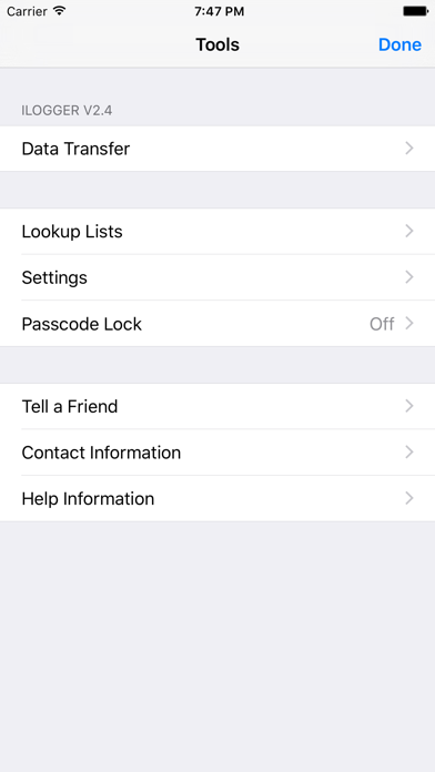 iLogger is the only app you will need to log and record all of your activities. If it happened, you can log it. User definable logs allow you to keep track of the events you want and how you want them. iLogger comes with sample logs to get you started quickly but you can set it up any way you desire to fit your needs. NOTE: There is a free lite version of "iLogger" so you can try before you buy. The only difference is the free version has a limit of 15 entries. Here is a small list of things you can keep track of: • Food / Diet / Calories • Exercise / Fitness • Running / Jogging / Biking / Hiking • Car Maintenance • Gas Mileage • Consulting time / Work • Project construction • Trip Diary • Flight Log • Dive Log • Swim Log • Medical / Medication • Money • Ham Radio • Anything you want to keep track of Quickly import your existing logs directly from your computer. You can also export your logs from iLogger directly to your own computer or via email. Built-in backup and restore to/from your own computer ensures you always have a copy of your data. Quickly find your events using iLogger's powerful filtering, searching, and sorting capabilities. Data entry is made easy with autofill, quick copy, and complete landscape support on most screens. iLogger allows you to enter the following types of data: • Text • Note/Comment • Date • Time • Duration • Currency • Count • Number • Yes/No • Web Address • Email Address • Phone Number • Location (GPS, address, city, etc.) • Voice Memo • Calculated (use basic math on other attributes and values) • Lookup List (user defined list of values) Store up to 10 images for each of your entries. Use existing images or take a photo with the built-in camera (if available). Share your data with others. Email logs to co-workers or friends and family. Other users of iLogger can import your shared logs directly simply by tapping a link in the email. Customize entry lists to display exactly the data you want to see. Apply colors to logs or individual entries to make them stand out. See a summary of the entry list you are viewing. Shows entry count and totals and averages of your data. Generate a report of your logs viewable on your computer. Includes a print friendly version of your entries. Protect access to your data with a passcode. Keep others out of your data. The passcode feature functions just like the version built into your iPhone or iPod Touch. The Tools menu gives you access to: • Data Transfer (Backup, Restore, Import, Export, Reports) • Lookup List maintenance • Settings (Display Options, Sorting Options) • Passcode Lock • Contact Information • Help Information Please visit http://www.maddysoft.com/iphone/ilogger to see a complete set of screen shots, additional information, and contact information for iLogger. UPGRADING FROM LITE VERSION: If you are updating from iLogger Lite v2.0 or greater you can easily transfer your data by tapping the Transfer button under Tools.
