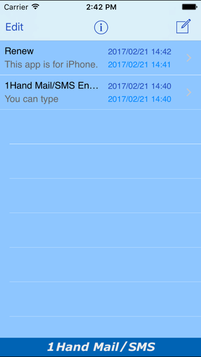 You can type messages easier and faster with one-hand wherever you are! What is Good about AEI Keyboard - Only One Push to input Vowel (letter). - Less than Two Push to input Alphabet. (any letter) - Input faster with Two Thumbs. ************************************************* *This Keyboard works only in this App. ===================================== SPECIAL FEATURES: * Friendly alphabetical character array with 13 multi input keys with just 2 characters each in order to type faster and easier * Ideal key size that reduce probability of typographic errors * Arrow keys to move caret right and left faster for easier text editing * Useful keyboard Settings (touch the “tools” icon for setting): * Auto determination of character typed with multi-input key (eg. When “OP=” key is typed once, the character “O” will be determined automatically after certain time interval, which is adjustable at the “tool” menu. This means you can type the same character continuously without using the right arrow key) * Auto capitalization on the 1st letter of each sentence * Useful buttons equipped: * “Clear” button to erase subject and/or body of the message immediately * “Hide” button to hide the keyboard for better view of longer messages * “Mail” button to send the content to Mail application * “Other” key to call another keyboard with major extended characters (multi input keys) * Auto save feature to save messages in “list” ----------------------------------------- Please check our website www.4us.jp Thank you!