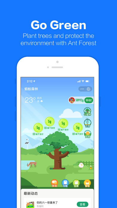 Alipay is a super app designed to offer a bouquet of services to bring convenience into your everyday life. Trusted by more than 1.2 billion global users, Alipay’s offerings span from allowing it‘s users to make payments (send, receive, and spend money with ease), manage finances, choose a suitable insurance scheme, hail a cab or even order in from a favorite restaurant, etc. Visit us on https://www.facebook.com/alipayglobal/ YOU ARE ONLY A ‘TOUCH’ AWAY- 1. Send/Receive money from your peers; 2. Transfer money to friends or split the bill at your favorite restaurant; 3. Card free payment at millions of merchants; 4. Top up your mobile phone and pay your utility bills; 5. Place and track orders in Taobao and TMall; 6. Order food from local restaurants or book a taxi; 7. Manage your money with wealth management products; 8. Free off-site cross-bank transfer / credit card repayment and loans; 9. Scan & Pay – Scan & use the QR code to pay at your local stores; 10. Book Air/Rail/Movie Tickets, at ease; 11. Enjoy hundreds of discounts and promotions from various merchants; 12. Group account facility to manage expenses within family and friends circle; 13. Donate/Participate in walkathons along with your friends in "Sports" service which supports HealthKit functionality.