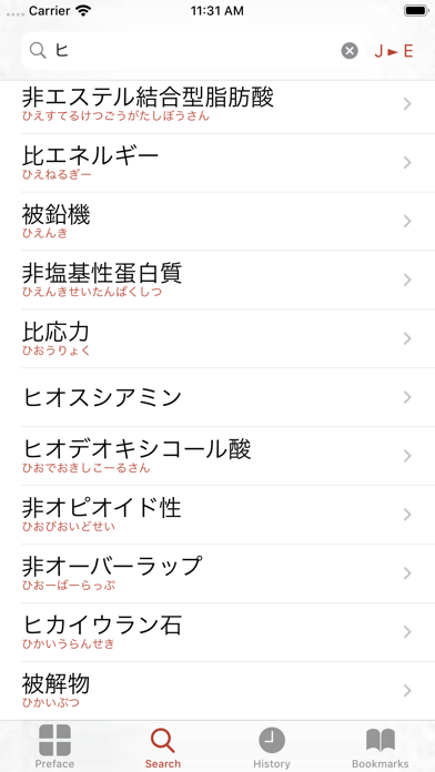 The Dictionary of Chemical Terms, compiled by The CJK Dictionary Institute (CJKI) in Japan, is the only application on any mobile platform that provides comprehensive coverage of chemical terminology. Do you know how to say "granulopoiesis" in Japanese? With this application you can immediately find the equivalent of 顆粒球生成. At home, at work and on the go, translators, students and professionals of chemistry will often encounter technical terms related to chemical engineering, industrial chemistry, plastics and the like for which they need to quickly look up their Japanese or English translations. The Dictionary of Chemical Terms, compiled by The CJK Dictionary Institute (CJKI) in Japan, is the only application on any mobile platform that provides comprehensive coverage of chemical terminology. This application, which provides a user interface in both Japanese and English, includes both English-Japanese and Japanese-English dictionaries that provide access to a total of approximately 243,000 technical terms. While several Japanese-English general vocabulary dictionaries are available for the iPhone, there are few specialized dictionaries that meet the specific needs of professionals, translators and information technology students, while those that are available are prohibitively expensive and of limited coverage. With this application, you get a database of technical terms with extensive coverage at your fingertips for a reasonable price. Please note: This app contains translation equivalents for each term, not explanations of each term's meaning. FEATURES * Both dictionaries combined contain over 243,000 entries * Designed for both English and Japanese users * Covers various subdomains including chemical engineering, industrial chemistry, analytical instruments, plastics, and much more * All this data is instantly accessible right on your device - no Internet connection required * What was that word you just looked up? Check the history! * Easy bookmarking puts important terms a tap away * Clean, easy to use interfaces in both English and Japanese ABOUT CJKI The CJK Dictionary Institute is directed by Jack Halpern, editor of the New Japanese-English Character Dictionary and The Kodansha Kanji Learner's Dictionary, now standard reference works. Be sure to check out our other dictionary apps in the CJKI Technical Dictionaries Series, including: Dictionary of Mechanical Engineering Dictionary of IT and Computer Terms Dictionary of Medicine and Life Sciences Dictionary of Business and Economics Dictionary of Electrical and Electronic Engineering