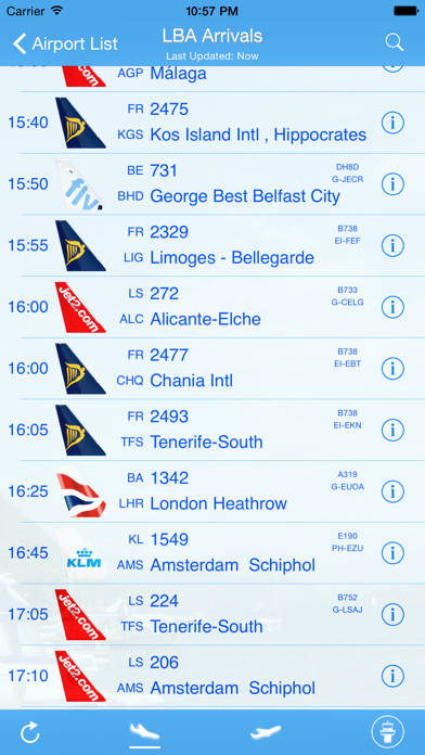 Real-time LBA Airport flight information. Flight arrival and departure time, flight status and destination are synchronized with your iPhone (iPhone 6, iPhone 6 Plus) and iPad. Features: • Advanced search tools for flight, status and destination information. Simply enter ANY keywords to filter out your flight. • Universal - natively support both iPad and iPhone • Friendly - show airline tail for the ease of looking for your flights. All flight information at your fingertips!