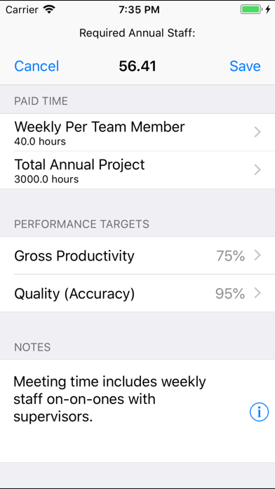Staffing Model is now a triple threat - by not only helping you save money on your team's operating costs, but also as your gateway to the secrets of Robust Production Management (RPM), and as your personal fast track to RPM certification! FIRST... With the Staffing Model app, managers can - in minutes - spot opportunities to save hundreds of thousands to millions of dollars per year; no more waiting weeks or months to uncover the 'buried treasure' that exists in every company. Just enter a team's task rates and annual volumes (actual or planned), and complete the other required data fields for a given staffing scenario (see each data field's round gray 'i' buttons if you need help). Staffing Model calculates the average number of direct team members required for the year - no more, no less. Compare Staffing Model's staff size to your current team complement, and the savings opportunities will reveal themselves immediately. SECOND... Staffing Model now provides access to all 13 Robust Production Management (RPM) modules - they're all there on the app's RPM tab. These are the same concepts and tools Metrilogics uses to deliver bottom-line process improvement results for clients - everywhere, every time. RPM modules include: • Module 1: Performance Culture • Module 2: Performance Framework • Module 3: Complex Planning Calculations • Module 4: Time Studies • Module 5: Staffing Models • Module 6: Unit Costs • Module 7: Resource Alignment Matrix • Module 8: Performance Distribution • Module 9: Measuring Before and After Savings • Module 10: Small Warehouse Case Study • Module 11: Large Insurance Dept. Case Study • Module 12: Selecting Viable Project Candidates • Module 13: Deriving Project Financial Value THIRD... and best of all... you can now get CERTIFIED as an RPM practitioner directly through the app. Once you've installed all RPM modules from the app's RPM tab, just click on the "Get RPM Certificate" button at the top of the RPM tab page. Follow the prompts to receive your own personalized, dated and serial-numbered RPM certificate in your email In Box. No classes... no exams... no kidding! One app delivering 3 ways to help your company remain profitable, while helping you build your personal management or consulting career. A terrific value - right in the palm of your hand! PDF versions of all 13 Robust Production Management (RPM) modules can be found at: • https://flevy.com/seller/LanceLatham • http://store.payloadz.com/results/Results.aspx?keywords=Robust+Production+Management Kindle versions of all 13 RPM modules can be found at: http://www.amazon.com/s/ref=nb_sb_noss_1?url=search-alias%3Dstripbooks&field-keywords=Metrilogics