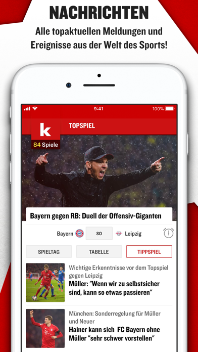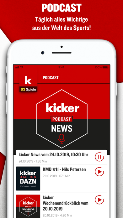 Die FUSSBALL App von Deutschlands Sportmagazin Nr.1, top aktuell und mit dem besten LIVETICKER. Alle Fußballspiele und Tore zur UEFA EURO 2020™. Fußball News, LIVE TABELLE, Spielberichte, Sport Highlights, EILMELDUNGEN und Push Infos zu TOPMELDUNGEN und jedem TOR IN ECHTZEIT - jetzt auch für Handball, Basketball, Eishockey, Tennis und Football. HIGHLIGHTS VIDEOS zur Europameisterschaft als VOD, Taktik-Analysen und News zu Teams und Spielen. Hol Dir jetzt die beliebte kicker Fußball & Sport App auf Dein Smartphone und VERPASSE KEIN TOR! Per Autoplay sind Videovorschläge der Redaktion abrufbar. ALLE FUSSBALL SPIELE, TORE UND SPANNENDE SPIELBERICHTE Du suchst Spielergebnisse von den Profis oder Deinem LOKALEN VEREIN? kicker kennt alle Spielpläne und Ergebnisse! Die kicker Sport Experten informieren direkt aus den verschiedenen Stadien der UEFA Euro 2020 ™. SCHNELLSTER LIVE TICKER Mit dem Fußball Live Ticker alle Infos zu den EM-Spielen und Bilder direkt vom Rasen - Deine mobile Sportschau. Jetzt auch mit Informationen zum Videobeweis und zur Tabellenveränderung während der Gruppenphase! PUSH-CENTER Einen schnellen Überblick über alle aktivierten Pushes zu Spielpaarungen, Ligen, Vereine oder Spieltage erhält man im Push-Center und kann dort die Pushes direkt alle editieren. MEHR ALS FUSSBALL Tägliche News aus allen nationalen und internationalen Ligen. Spielberichte, DAZN Highlight Videos, Interviews, PKs und detaillierte Transferinformationen & Ablösesummen. Jetzt noch besser informiert mit Push Informationen zu wichtigen Sportnachrichten. KICKER GAMES ERLEBEN Gewinne Preise mit dem kicker Tippspiel und dem neuen Managerspiel "EM Coach" und tippe auf mehr als 300 Wettbewerbe. THEMEN-ARCHIV Bedeutsame Themen aus der Sportwelt werden von der Redaktion chronologisch zusammengefasst. LIVE BLOG Wichtige Ereignisse und die Top-Spiele des Tages immer sofort im Live Blog aktualisiert abrufbar. DARKMODE System- oder appseitig einfach den dunklen Modus in der App aktivieren. Funktioniert auch unterhalb iOS 13. TURNIERRECHNER Tippe alle Spiele der UEFA EURO 2020™ von der Gruppen- bis zur KO-Phase und dem Finale durch und kröne deine Lieblingsnationalmannschaft zum neuen Europameister. IMMER DIE NEUSTEN FANARTIKEL Im kicker Shop hast Du direkten Zugriff auf aktuelle Fanartikel Deiner Lieblingsmannschaft, wie Trikots, Schals und vielem mehr. SOCIAL MEDIA Posts und Tweets der Teams und Spieler von Facebook , Twitter und Instagram immer aktuell abrufbar. VORLESEFUNKTION Jeder aktuelle Artikel lässt sich jetzt einfach vorlesen. WERBEFREI Erlebe mit dem iTunes Abo für nur 99 Cent pro Monat die kicker App ganz ohne Werbung. Das Abo verlängert sich automatisch um einen weiteren Monat, wenn nicht rechtzeitig zuvor gekündigt wurde. Die Nutzungsbedingungen zum Abo erhältst Du hier: http://www.kicker.de/ios_kicker_nutzungsbedingungen MEIN KICKER: MEIN VEREIN, LIGA und WETTBEWERB Mit "mein kicker" kannst Du Deinen Verein, Liga oder Wettbewerb auf der Startseite platzieren. Rufe aktuelle Nachrichten, Vereinsstatistiken, -infos und -kalender oder Fotos & Videos einfach direkt ab und individualisiere die Push Nachrichten. VIEL MEHR ALS NUR FUSSBALL kicker zeigt Dir alles zur diesjährigen Fußball-Europameisterschaft, der Bundesliga und Champions League. Außerdem alle eSport News, Videos zu Spielen wie FIFA, Pro Evolution Soccer, Starcraft II etc. Jetzt mit vielen neuen Cups, Wettbewerben, Livescores und Statistik Center! Außerdem spannende Berichte, Liveticker und Livescores zu Eishockey (DEL, NHL), Basketball (NBA) und Handball (HBL). American Football (NFL) jetzt mit eigener Berichterstattung! ALLES zu Deinen Lieblingsligen Spielplan ansehen, Liveticker nachverfolgen, Tabelle prüfen, Tabellenrechner nutzen, Statistiken abrufen, Aufstellung einsehen und viel mehr. Solltest Du Fragen, Kritik oder Anregungen haben, wende Dich bitte einfach an uns!