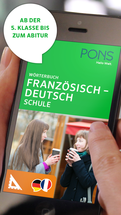 Das Wörterbuch für die Schule von PONS mit 260.000 Stichwörtern, Wendungen und Übersetzungen. Schreibst du in der Schule französischsprachige Texte, liest Lektüren oder lernst Vokabeln für den nächsten Test? Schlägst du häufig französische Begriffe nach? Das PONS Wörterbuch Französisch für die Schule enthält den Wortschatz, den du in der Schule wirklich brauchst und ist damit die perfekte Hilfe für dich. Zu den Inhalten • Aktueller Wortschatz mit rund 120.000 Stichwörtern und Wendungen und 140.000 Übersetzungen • Mit dem aktuellen Wortschatz aller Schulbücher sowie Oberstufenwortschatz • Viele Extras: Grammatik, Verbübersichten, Lerntipps zur Aussprache, Übersetzung und Landeskunde • Beide Übersetzungsrichtungen (Deutsch - Französisch und Französisch - Deutsch) Was kann die App? • Diese Applikation funktioniert 100% offline. • Optimiertes Multitasking auf dem iPad: Mit „Slide Over“ eine zweite App nutzen, ohne die erste verlassen zu müssen. Mit „Split View“ zwei Apps gleichzeitig öffnen und nutzen. So kannst du z. B. im Wörterbuch nachschlagen, während du E-Mails liest oder Nachrichten schreibst. • 3D Touch-Unterstützung: Auf dem iPhone ein Stichwort leicht antippen und mit „Peek“ eine Vorschau vom Wörterbucheintrag erhalten. Durch Antippen des Icons der PONS Schule Bibliothek das Menü mit den wichtigsten Wörterbuch-Funktionen öffnen („Quick Actions“) und direkt zur ausgewählten Funktion im Wörterbuch gelangen. • Für sehbehinderte und blinde Menschen! Bildschirmlesefunktion „VoiceOver“ einschalten und ausgewählte Funktionstasten und Elemente der Wörterbucheinträge vorgelesen bekommen. • Übersetzen von ganzen Textpassagen: Text in einer anderen Anwendung markieren, auf den Weiterleiten-Pfeil tippen und das Wörterbuch auswählen. Nun werden alle Wörter des Textes angezeigt, die du nachschlagen kannst. • VOKABELN LERNEN: Wörter, die du lernen möchtest, definierst du als Vokabelkarte. So lernst du neue Wörter schnell und effektiv. • Die wichtigsten Wörter MIT SPIELEN LERNEN: Mit Memo, Kombinator, Wortschlange, Buchstabensuppe und ProfiTest kannst du den Grundwortschatz lernen und üben. • Lern die AUSSPRACHE: Viele französische Stichwörter kannst du dir anhören. Die Vertonungen wurden von Muttersprachlern gesprochen. • Mit der Volltextsuche findest du schnell BEISPIELSÄTZE. Über PONS: Seit vielen Jahren entwickelt PONS grüne Sprachlernmaterialien fürs Leben: vom klassischen Wörterbuch und der Grammatik über Audio-Sprachkurse bis hin zu kostenlosen Online-Angeboten. www.pons.de www.facebook.com/PONSverlag www.instagram.com/pons_gmbh © shutterstock / / Wlad74