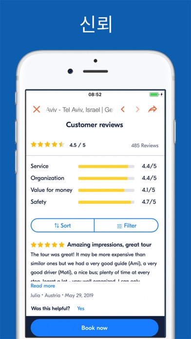 특징 - 증강 현실 - AR - 안내 책자를 그만 가지고 다니십시오!!! - 100% 오프라인 여행 안내 - 오프라인 메트로 지도 - 100% 로 줌이 가능한 지역 오프라인 지도 - 사진 갤러리 - 현지 오디오 - GPS 가능 - 공용 버스 정류장, 레스토랑, 술집, 호텔, 병원, 박물관, 극장 등을 표시한는 지도상의 인터액티브한 관광지들 - 하루별 여정 - 예산별 호텔 및 레스토랑 - 갈 곳, 할 것 그리고 쇼핑할 곳 - 밤문화 소개 - 도시, 구경, 통근 정보 - 안전 지침 - 아이폰, 아이팟 터치 및 아이패드 호환성 ------------------------------------------ 제품 설명 호주머니에 무거운 도시 관광 가이드책은 그만 가지고 다니세요. 여행은 가볍게!!! eTips 여행 가이드만 있으면 아이폰, 아이팟 터치 또는 아이패드에 완전한 도시 가이드를 가지고 있는 것입니다. 이 여행 가이드는 오프라인에서도 사용 가능합니다. 인터넷 접속 및 전화비의 추가 요금 불필요!! 증강 현실, 다른 여행 가이드와는 다르게 최고의 아이폰 및 아이패드 도구 - AR –로 시내를 경험하게 됩니다. 간단히 AR 버튼을 누르고, 360° 회전을 하고 화면에서 최고의 장소가 어디인지 어떻게 찾아 가는지 보십시오. 위아래로 스크롤 하면서 가장 가까운 그리고 가장 먼 관광지를 찾아 보십시오. 많은 요청후에, GPS 에 사용자 자신의 걸음걸이 표시 기능을 넣었습니다. 어디에 서있는지 보기만 하면 됩니다. 이것은 여정별로 이용되도록 설계되어 매우 실용적인 시내 가이드입니다. 여행 기간에 따라서 4개의 다양한 시내 여정을 제공합니다. 저희는 또한 여행객들에게 시내로 진입하는 방법, 교통 정보, 쇼핑 정보, 밤문화, 대중적인 장소, 안전 지침 등에 대한 유익한 정보 및 조언을 제공합니다… 다른 가이드와는 다르게, eTips 여행 가이드는 관광비, 공용 버스 정류장, 레스토랑, 술집, 호텔, 병원 및 기타 많은 유용한 흥미로운 곳을 소개하는 해당 지역의 인터액티브한 줌이 가능한 오프라인 지도(6배 줌 + GPS 기능)를 제공하고 있습니다. 여러분은 절대로 길을 잃지 않을 것입니다! 이 가이드만 있으면, 시내뿐만 아니라, 그 주변 지역도 돌아다닐 수 있습니다. 이 여행 가이드는 여행자들의 조언을 토대로 만들어졌습니다. 다른 시내 가이드와는 틀리게, 저희가 이미 해당 장소를 방문했음을 보장하고, 좀 더 재미있는 관광이 되도록 폼나고 실용적인 도구를 여러분에게 제공하고 싶습니다. 모든 정보 또는 피드백, 혹은 무엇인가 새로운 기능을 원하는 경우에는 다음으로 저희에게 주저말고 연락 주십시오: [email protected] http://www.etips.com에서 다양한 여행 관련 앱들을 만나보시기 바랍니다. 저희를 팔로우하세요 @ facebook.com/etips.travel