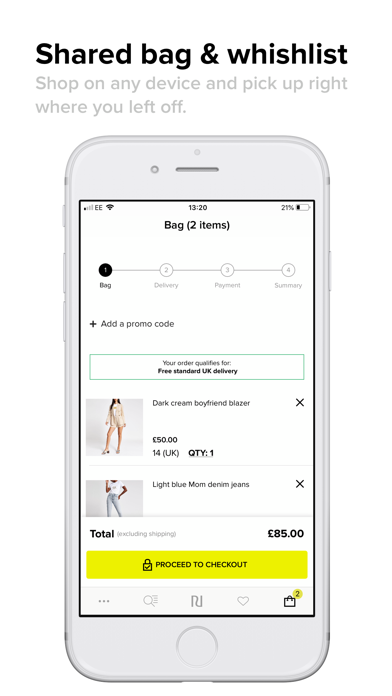 The River Island app lets you access the best of the brand you love, anytime and anywhere. With just a few taps, you’ll have the hottest new styles on their way to you, on the day of your choice. No need to look elsewhere, with must have fashion for men, women and kids, all in one place! More Island perks: - Notifications let you see online exclusives before anyone else. - The Wishlist saves your favourite items until you’re ready to checkout. - Bag Merge gives you a seamless shopping experience across devices - Nominated Day Delivery lets you choose the best time to receive your order