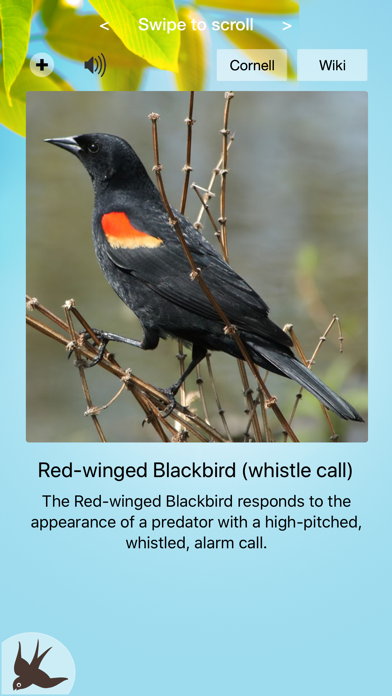 The essential app for all bird lovers! How often do you hear songs and calls of birds around you - wouldn't it be good to know what they are? Chosen by Apple for "Apps for the Great Outdoors" Chirp! has been designed by nature specialists specifically to help you learn and identify bird song. It is also a great feel-good pick-me-up! Listen and learn bird songs and calls from across the country, with up to 34 seconds of song for each bird, and alternative recordings for some birds. The songs and calls are of the highest quality, provided by the world-renowned Macaulay Library at the Cornell Lab of Ornithology. Bird names are in English and French. If there's a sound missing that you would like us to include, just let us know and we will do our best to add it in! On first use, Chirp! selects birds for your current location, but then you are free to select any province or territory on the Map Screen, to learn the common species from east to west and north to south. Or you may prefer to select all birds to learn the whole range! Try sorting by song style, so that you can compare birds that hoot and coo, or those with high pitched songs for example. If you are a beginner, sort the birds by commonness, so you can listen to the most familiar ones first, then move on to less common backyard visitors. Make a shortlist of your favourites so that you can find them quickly (tap the + icon above the image to add birds to your favorites list). After listening, try the quiz to test your memory. Answer fast to earn a score multiplier and get on the high score table! Experienced birders can use the custom quiz to help distinguish and learn similar songs. And when you need a rest, try the slideshow feature - choose which birds to include, maybe add background bird song, then simply relax. If you want to continue learning while you relax, switch the voiceover on and hear the name of the bird announced at the end of each clip. This is also a good way of competing with the family - who can say the name of the bird first?! To keep up with the latest news: twitter.com/iSpiny facebook.com/chirpbirdsongs