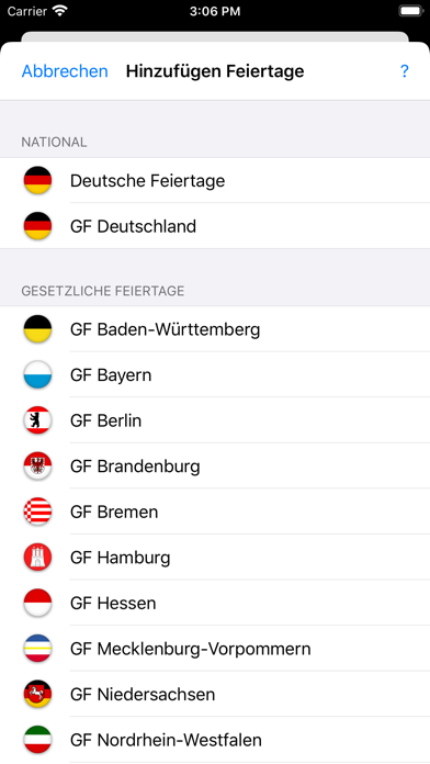 Insert the German holidays and school holidays into your iPhone calendar with one tap. The holidays will be added as all-day events, you don't need any subscriptions. You can also select beforehand which holidays you want to add to your calendar, and apply this selection across all years. Saves you a lot typing for the upcoming years! Once added all holidays can be easily edited, deleted or shifted to another calendar and synced with iCal, Google, Outlook, iCloud, etc VERY SIMPLE, FLEXIBLE AND EASY TO USE - Add country flags. - Select individual holidays and years you want to add. - Insert into a calendar of your choice (home, work). - Apply your selection across all years. - Duplicate Detector, deletes duplicates caused by overlapping calendars. - Unique Holiday Cleaner. - No subscriptions. THE APP CONTAINS - Deutsche Feiertage. - Gesetzliche Feiertage Deutschland. - Gesetzliche Feiertage pro Bundesland. - Schulferien der Bundesländer. - Buddhistische, Christen, Hindu, Islamische und Jüdische Feste. - Holidays of Australia, Austria, Canada ,China, Denmark, Germany, France, Greece, Hungary,India, Indonesia, Ireland, Italy, Korea, Japan, Netherlands, New Zeeland, Panama, Russia, Singapore, Spain, Taiwan, Thailand, South Afrika, Switzerland, United Kingdom and United States. Week numbers you can add with our app: Week Numbers - ISO / European, US, Middle East, Simple, Custom Pro.
