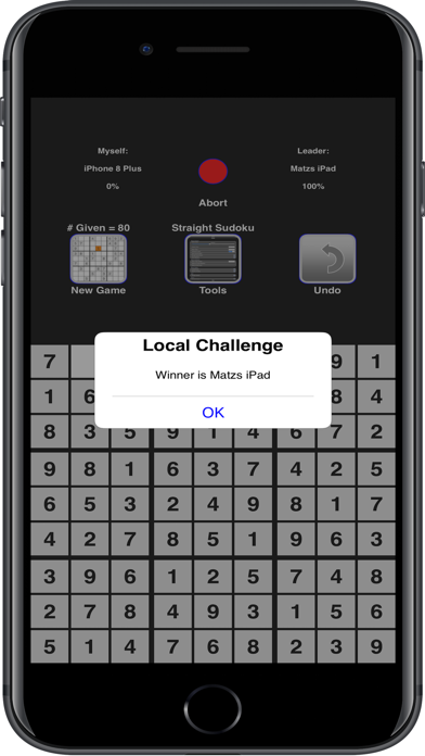 Billions of unique puzzles created from scratch in real time. Game levels between 17 - 80. Each level corresponds to the number of given numbers (clues). Game levels 17 -26 with four additional choices, "Easier", "Easy", "Hard" and "Harder". Local Challenge. Play the same game against peers in real time. Undo/Redo. Hints. Check for incorrect input. Path tracking/subnotes on cell input. Save and reload puzzles. Autosave on Exit. View/Reset statistics for each gaming level. Normal games, random games and games with cross-diagonal solutions, 9 rows by 9 columns + 2 diagonal. All non-Random games are 'one solution' games.