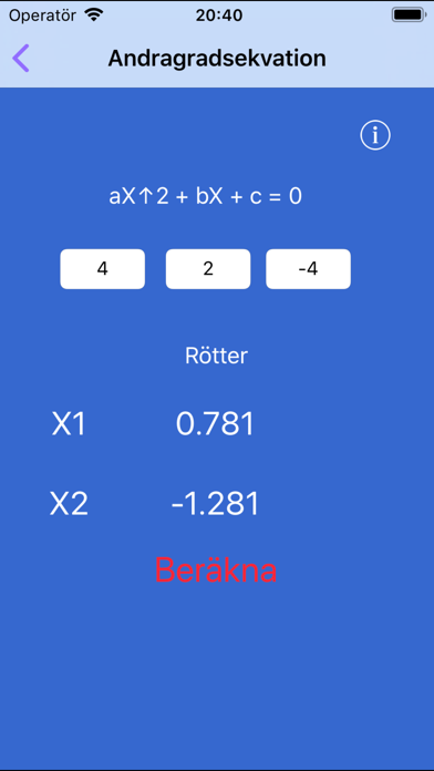 - En behändig formelsamling ständigt i fickan, - Alltid snabbt inom räckhåll och som inte är beroende av internet. För användning i eller utanför skolan. Stöd för minnet, uppslagsbok och lärohjälpmedel. - 18 sidor fyllda av formler, tabeller och samband. I många fall är sambanden förklarade med figurer och enheter. - Matematik, geometri, mekanik, fysik, konstanter mm. - 8 formler kan användas för direkta beräkningar i appen.