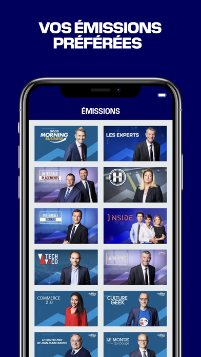 - Téléchargez gratuitement l’application BFM Business la 1ère chaîne d'information économique de France TOUTE L’ACTUALITÉ ÉCO EN TEMPS RÉEL Restez informé(e) 7 jours sur 7, 24h sur 24, de l’actualité économique et financière. Grâce à la navigation par la «Tab Bar» (présente en bas de l’écran), accédez facilement aux infos éco qui vous intéressent : • Accueil : la sélection de la rédaction de BFM Business • Émissions : les replays des émissions BFM Business • TV pour suivre le Direct TV de BFM Business à tout moment et les replays d’émissions. Les derniers replays sont accessibles dans cette rubrique grâce au nouveau format slider: il vous suffit de faire défiler la sélection de vidéos en swipant. • Radio : le direct BFM Business. Au lancement, une barre audio apparaît en bas de l’écran et vous permet de continuer votre écoute tout en naviguant dans l'application et même lorsque votre smartphone ou tablette est verrouillé. • Menu pour retrouver l’ensemble des rubriques BFM Business (Entreprises, Tech, Emploi, Immobilier, Bourse, …) ainsi que l’intégralité des podcasts Ne ratez rien des alertes infos BFM Business en activant les notifications ! Vous serez informé(e) des dernières actus en temps réel. VOUS AVEZ MANQUÉ LE DIRECT ? Retrouvez vos émissions préférées en replay vidéo ou en podcast audio : * Good Morning Business avec Christophe Jakubyszyn à 6h * Les Experts avec Nicolas Doze à 9h * BFM Patrimoine avec Cédric Decoeur à 10h * 60 minutes Business avec Guillaume Paul à 12h * BFM Bourse avec Guillaume Sommerer à 15h * Le Grand Journal de l’Éco avec Hedwige Chevrillon à 18h * Tech&Co avec François Sorel à 20h... - Pour tout commentaire sur l'application, vous pouvez nous contacter à : [email protected], vos avis nous sont précieux.