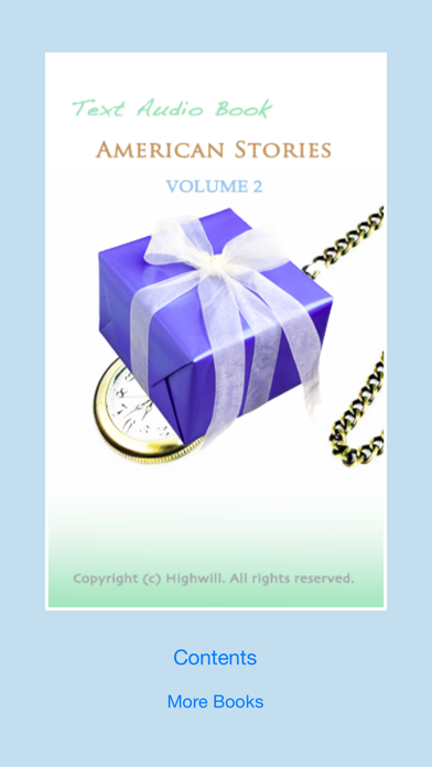 EASY ENGLISH! This application displays text and plays audio at the same time. Contents -A Horseman in the Sky -A Municipal Report -A Pair of Silk Stockings -An Occurrence at Owl Creek Bridge -Feathertop -Rappaccini’s Daughter -The Exact Science of Matrimony -The Gift of the Magi -The Legend of Sleepy Hollow -The Luck of Roaring Camp Key Features 1. When you touch the play button, the app reads a sentence. 2. It supports highlighted text for the sentence being read. 3. It supports auto scrolling. 4. If you touch a sentence, the app read the sentence.