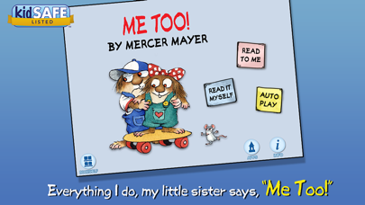 Join Little Critter in this interactive book app as his little sister tags along wherever he goes, saying "Me Too!" to everything from playing football with his friends to eating the last piece of cake! Explore pictures, learn new vocabulary, and personalize the story with your own narration. Jump inside to find out how Little Critter learn that sharing with your siblings is good because sometimes they share back! Explore the Story: - ENCOURAGE literacy skills with highlighted narration - LEARN new vocabulary with tappable words and pictures - RECORD your own narration & share it with others - SELECT a scene with easy-to-use navigation - KEEP kids in the story with parental controls Designed for children ages 2-5 Enjoy interactivity, narration, music, sound and educational features that simply are not possible in the print version. Plus, your dog will never chew the pages. You will help support a more sustainable world. And you will always have your entire library with you in your pocket. Start building your digital book app library today! ------------------------------------------------------------------------ The Reviews Are In: - "Fabulous" - CNET - Young kids will enjoy the stories of Little Critter - PadGadget.com ------------------------------------------------------------------------ We'd Love To Hear From You! - Please share your thoughts in a review! Your experience matters to us. - Need tech support? Contact us at [email protected] - Say hello to us on FB! facebook.com/oceanhousemedia Official Mercer Mayer licensed app: www.littlecritter.com