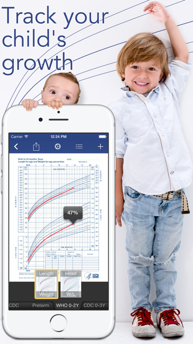 Be confident that your baby or child is growing at the right pace. This app plots your child's growth curves and calculates exact percentiles using the most authoritative growth reference data. • All ages: perfect for newborns and older children • WHO and CDC growth charts (birth to up to 20 years) • Also includes preterm charts (Fenton) and corrected age • Metric (kg, cm) and US (lb, oz, ft, inches) units • Exact percentiles of your child's measurements • Official paper templates and custom-fit charts • Unlimited number of children. Plot them together to compare their growth. • Body Mass Index (BMI) calculation. BMI chart with WHO percentiles. • Email your charts and your list of measurements • Transfer your data to other devices (AirDrop or email) • Export as CSV for use in spreadsheets or backups • Printing and PDF export