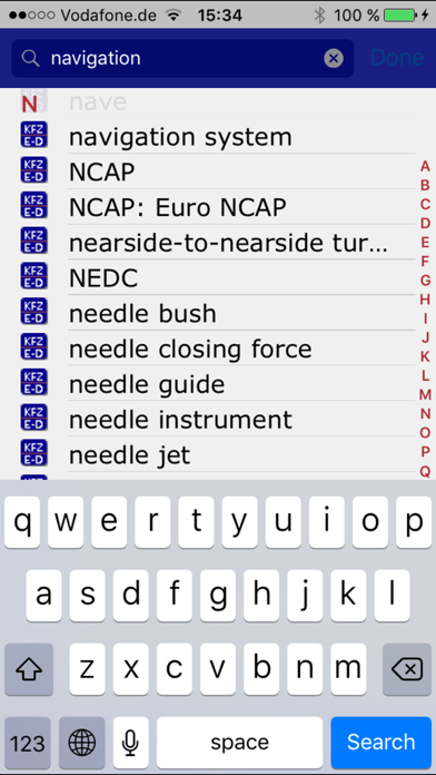 Blaha: Pocket Dictionary of Automobile Technology, German-English / English-German, 2009 - the dictionary is a specialist dictionary and contains all essential terms and acronyms from the broad area of automotive technology - extremely up-to-date specialist terminology with more than 43,000 entries and 55,000 translations - all entries are presented subject field designations plus numerous brief explanations - in addition to the “classic” automotive areas such as engine, fuel system, power transmission, chassis, braking system, exhaust system, body, tyres and vehicle electrical systems, the dictionary also covers other areas such as greasing/tribology, bearings, testing, IT in vehicles, traffic and traffic control. Motorcycle and motor sports terms complete the topic areas treated. About the UniLex-App for iPhone and iPad - clear and intuitive user interface - automatic search for all occurences of your search term. Example: searching for "distance" will also find "absolute distance" and "zoned distance protection". - filtering function to summarize search results in a list of results - Fast scrolling in an index list - Hyperlinks enable to navigate back and forth between the articles of the dictionary - display of a list of search results with a up/down page scroll to further results - two-list-display - headword list and search results - in the iPad-app - Offline usage: the UniLex app needs to be downloaded only once. No further internet/roaming cost will incur on usage.