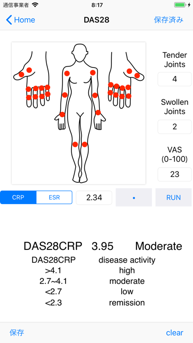 このiPhone/ iPod touch アプリケーション「DAS28/ACR-EULAR criteria」はDAS28CRP, DAS28ESR, CDAI, SDAI, ACR-EULAR classification criteriaを計算できます。