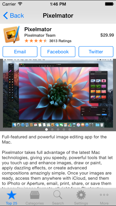 Browse the Mac AppStore to find the best and latest apps. * Share on Facebook or Twitter or email yourself so you can easily find that killer app again when you get home. * In App purchase the allows you to remove the banner ads available from the settings tab. * Browse by category or search by keywords