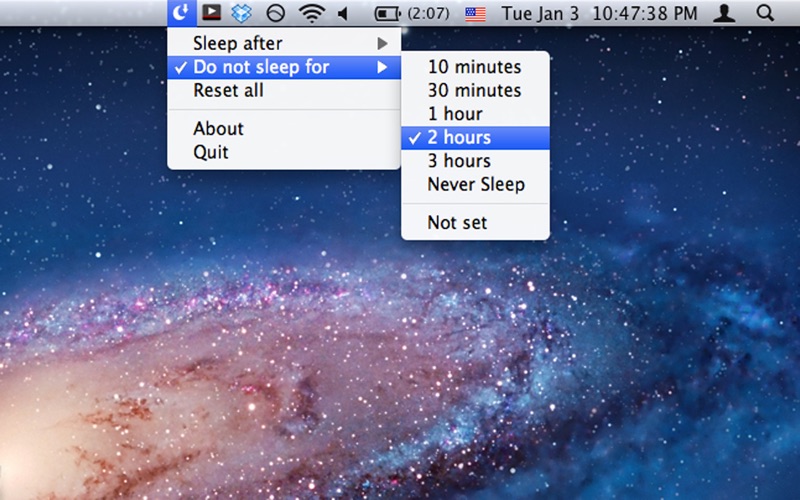 SleepTime is a light-weight app that lives on your menu bar, letting you easily set a timer to put your Mac on sleep automatically after a specified time period you choose. Not only that! With SleepTime, You can also keep your computer awake and prevent sleep for a period of time. ‣ The Sleep Timer You are sleeping watching a YouTube video and you don't want your computer to stay on until morning. Set it to sleep automatically after [X] minutes / hours with the Sleep timer. When 5 minutes are remaining until going into Sleep, SleepTime will show you the time remaining in your menu bar, allowing you to abort the sleep timer, if needed. ‣ SleepTime gives your Mac some caffeine! You are doing a critical task on your computer, you don't want it to Sleep every now and then because of the default power/energy settings. Prevent it from sleeping for a period of time you choose, after which your default Sleep preference should be back to normal. Get SleepTime for free today!