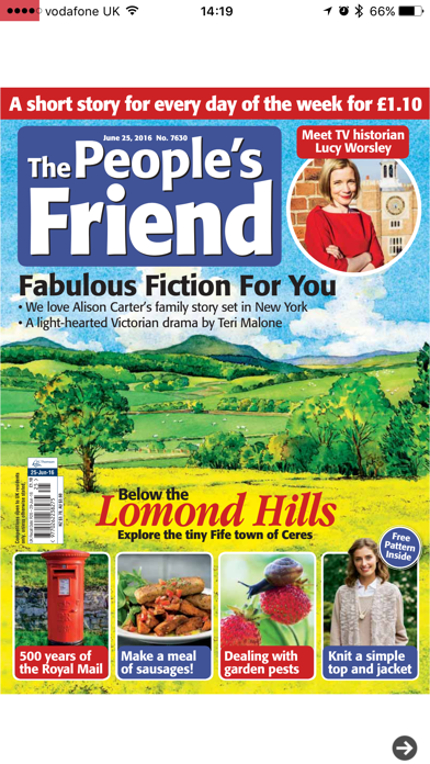 The People’s Friend is the perfect weekly magazine for everyone who enjoys good reading. Since 1869 it has been delighting readers around the world with its entertaining stories, serials and features, all with a distinctly Scottish flavour. Every issue is packed with feel-good short stories, serial instalments, cookery, craft, knitting, puzzles and health, as well as fascinating features on scenic locations around the UK. It justly deserves its reputation as the Famous Story Magazine, and will brighten any reader’s day! The digital edition of the People’s Friend is just as friendly and feel-good as the print edition in a convenient and accessible format. Purchase and Subscription Information 1 Single Edition purchase for £0.99 1 Month Subscription for £2.99 3 Month Subscription for £8.49 6 Month Subscription for £16.99 1 Year Subscription for £32.99 Payment will be charged to iTunes Account at confirmation of purchase. Subscriptions automatically renew unless auto-renew is turned off at least 24-hours before the end of the current period. Account will be charged for renewal within 24-hours prior to the end of the current period, and will be charged at the current subscription price. Subscriptions may be managed by the user and auto-renewal may be turned off by going to the user’s Account Settings after purchase. No cancellation of the current subscription is allowed during active subscription period. Issues purchased as part of a subscription are only available to read during the subscription period. If you cancel you will not retain access to the issues that you obtained with your subscription Single issues can be purchased to be kept permanently. Privacy Policy URL https://www.dcthomson.co.uk/privacy-policy/ FAQ URL https://www.thepeoplesfriend.co.uk/digital-edition-faq/