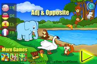 "This is such a fantastic app for my daughter. It is perfect. All I wish is for there to be hundreds more words!Thank you for all the work that must have gone into this app."--a satisfied Mom The first in a series of animated Word Toys, Adj & Opposite encourages kids ages 4-7 to discover word meanings like they never have before. Through interactive play, our words come to life as the Adj & Opposite demonstrate word meanings with their highly animated antics. Young readers can interact with the words. They literally play with the words to make HAPPY happy and BRAVE brave. Adj & Opposite provided 82 most common Adjectives in English, Germany, Spain and France with A-Z alphabetical order. You can spell it, learn it and play with it in each of 4 languages. Every verb is spelled and pronounced by pure and native teachers, and animated by cute and vivid animations! Adj & Opposite is designed to be kid-friendly! There are no complicated menus for kids to get confused by, or multiple options to get lost in. It was tested by several toddlers and we took their suggestions seriously to create a funny but educational app for them. What’s more, not only will your children love the spelling, but they will also be kept constantly motivated by the rewards as: Colorful Balloons and Bubble Popping! Features: Word Toy Expressive Words Invites Play Word Learning Highly Animated Dynamic Interaction Appealing Animated Characters Simple and Elegant Rich Multi-Touch Interface Innovative Tutorial Designed in Partnership with Children Contact Us: Email: [email protected] Facebook: http://www.facebook.com/pages/Joy-Preschool-Game/134245419994058