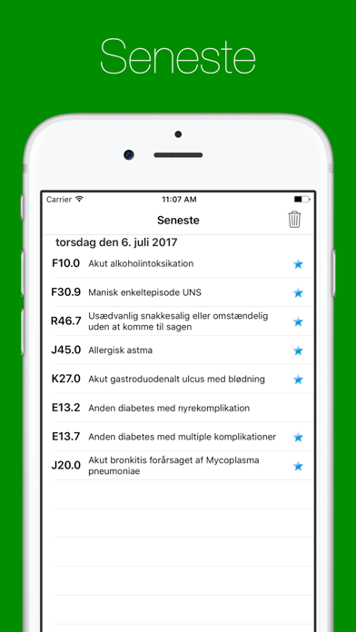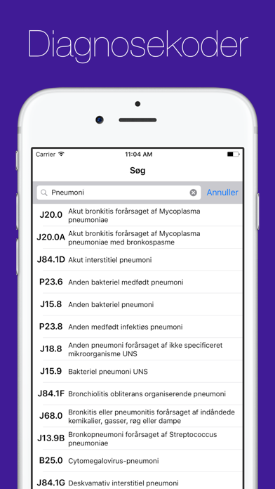 Det kan være en udfordring at kode diagnoser korrekt. Kan du huske diagnosekoden for mycoplasma pneumoni eller aortainsufficiens? Denne app giver dig svarene - og er et uvurderligt værktøj for alle læger, forskere og sundhedsfagligt personale der bruger diagnosekoder. Avancerede søgefunktioner gør det muligt at søge både alfabetisk og systematisk. Du kan organisere udvalgte favoritter i mapper efter fx. speciale eller diagnosetype. Diagnosekoder kan e-mailes til kollegaer eller til dig selv for senere brug. Yderligere information om en diagnose kan søges i Wikipedia direkte fra app'en! Bemærk venligst at der i denne udgave bruges de oprindelige WHO ICD-10 koder, hvor der ikke er et foranstillet "D" som i Sundhedsstyrelsens SKS-koder. De detaljerede beskrivelser (med inklusions- og eksklusionskriterier) af de enkelte koder er aktuelt kun tilgængeligt på norsk. Denne app benytter data der stilles til rådighed af de danske og norske sundhedsstyrelser (Medinfo.dk og Finnkode.kith.no) og er senest opdateret januar 2012. Hvis du har spørgsmål er du meget velkommen til at benytte vores kontakt-formular på hjemmesiden.