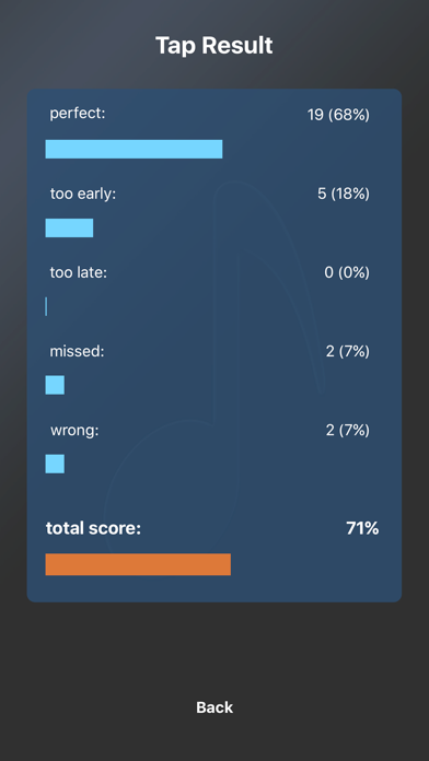 *** THIS IS THE FREE LITE VERSION - CHECK OUT THE PRO VERSION FOR MANY MORE FEATURES! *** Timing Trainer is an interactive, user-friendly app that helps you improve your rhythmical skills. Just choose your favourite tempo and measure and begin to practice right away. Perfectly suited for music lessons, this app is created by musicians for musicians - so you can be sure that it fulfills your needs! ;) How it works: 1. choose tempo and measure 2. create the profile of your choice (eighth notes, quarter notes, rests, ...) 3. tap play when you're finished and begin to practice! - can you stay on the beat even if there's a rest for 2 bars? 4. adjust the volume of the 1's while playing You're also free to use it as a simple, EXACT metronome without having to practice anything. Features: - create your individual profiles fulfilling your personal practice hours using eighth-, quarter-, half- and whole notes including whole rests - adjust tempo and measure - adjust the volume of the indication for the 1's in every bar - loop your setting until you hit "stop" for endless practice sessions - save your profiles so you can reuse them anytime - choose between 3 different click sounds Have fun!