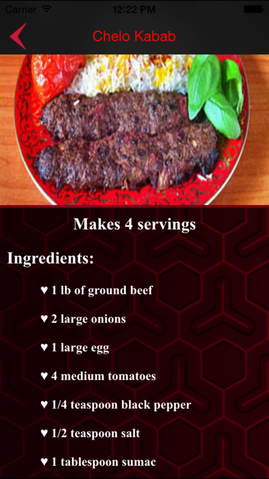 +++ The Best Persian recipes app +++ Do you love Kabobs? Does the sight of saffron awaken your appetite? Would you like to know how to cook some of the most delicious Persian food entrees on the planet? Look no further! Introducing the Persian food recipes app for iPhone. A free digital cookbook with 35 of the most savory recipes, from the heart of the Iranian culture. Within this application are secrets for preparing some of the best persian foods, just like those created by gourmet chefs in fancy persian restaurants. Simple and easy to use, you will learn to cook the following just like the pros: - Chelo Kabab - Ghormeh sabzi - Aashe Reshteh - Kookoo Sabzi - Kashk e Bademjan - Joojeh kabab - Zereshk polo - Tahchin Morgh - Sholeh zard - Abgoosht + 25 more! Features: + 35 delicious persian recipes + Simple and easy to use + Share on facebook or email + An editable grocery list + 100% FREE This app is available in English only. please submit any suggestions and feedback about the app directly to [email protected]