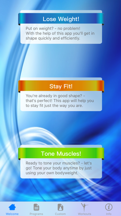 Want to lose weight, tone muscles or simply stay fit? - then you're right here with this amazing app. Just follow your personal instructor along real-time video workouts embedded in specifically designed programs lasting from 12 up to 45 minutes. It's the perfect way to lose weight, tone muscles or stay fit whenever and wherever you want! Top Features: * Real-time video workouts with a professional instructor * Specifically designed programs for the category of your choice: Lose Weight, Stay Fit or Tone Muscles * Perform your workouts at any time at home or wherever you want * No need to buy extra training material, you will just use your body efficiently * Stream the workout videos directly to your TV using AirPlay and AppleTV * Create, save and load your individual programs according to your needs How it works: Personal Workout is based on a modular system consisting of individual workouts that are hand-selected, combined and performed by your professional instructor Claudia according to her longstanding experience. Depending on your personal aims just follow Claudia through real-time video programs of your category: Lose Weight, Tone Muscles or Stay Fit. Each program consists of a warmup phase in the beginning and then follows a specific purpose, e.g. burning calories and toning the abs. Finally, if you feel comfortable with a program simply go on to the next one that will be more advanced and longer. Perform your current program daily for an optimal result, 5 times a week for a very good result or 3 times a week for a good result. Nevertheless: performing only once a week is still better than doing nothing! The workouts are designed to work on every spot of your body by the categories: abs, legs, buttocks, upper body, whole body, cardio and warmups. In addition, each exercise is chosen carefully so that it is never harmful to your health, regardless of you doing it correctly or more sloppily: in the worst case the exercise is just not that effective, but it is never harmful! About Claudia: Claudia studied sports science and finished her MSc with distinction, focussing on the field of prevention. During her studies she founded her own dance and motion studio which she is leading successfully for over 10 years now. While giving master classes for modern dancing like Hip-Hop or Jazz-Dance she always integrated health and fitness in her courses. Using her knowledge from the university in combination with her positive attitude makes every workout unique, effective, and of course fun.