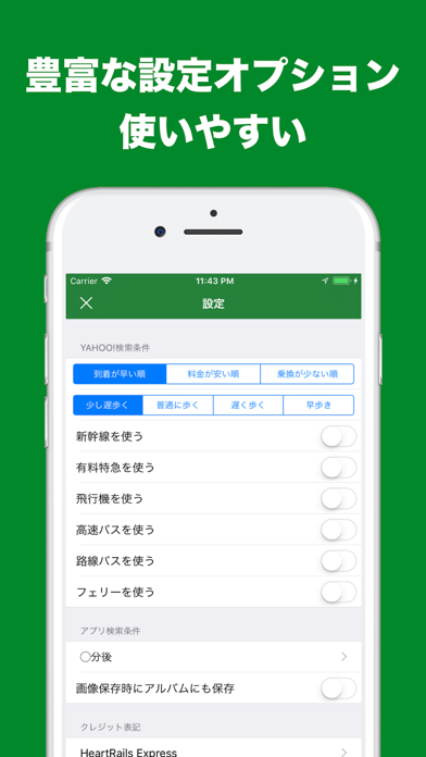 簡単に素早く電車の乗換を調べることに特化した乗換案内アプリです。 このアプリならいつも調べる乗り換えルートを簡単スワイプで切り替えることが出来るから速攻で乗換が調べれます。めんどくな入力が一切不要!会社まで行きの電車、帰りの電車をセットしておけば、後は検索ボタンをタップするだけ! 煩わしい操作から今日から開放されます。 ■従来の乗換アプリが使いにくいところ ・使うたびに駅や時間を指定し直さないといけない ・検索結果を保存できないからもう一度見たいときにネット接続が必要 ・検索条件を変えると前の条件が消えてしまう ■このアプリが便利なところ ・検索条件を5つまでアプリに残せてiPhoneのホーム画面みたいにスワイプで速攻で検索が出来ます ・他のアプリで会員登録しないと使えないMyルート機能が無料で利用できます。 ・検索結果を画像として保存できるから、電波が入らない場所でもいつでもチェックが出来ます ・駅の入力しやすさにこだわった使いやすい作りになっています ・無駄な機能をなくしてシンプルにすることで、だれでも迷わずにアプリが使えます。 今日から煩わしいアプリを辞めて、この使いやすいアプリを使ってみてください!!