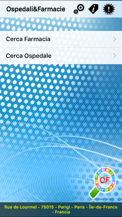 Finding in Italy the hospital or the pharmacy closest to your location is no longer a problem! O&F APP enables you to track down hospitals and pharmacies near you, exploiting the potential of GPS. It is also possible to find hospitals and pharmacies sorting by Municipalities, Provinces or Regions. O&F uses its own archive where there are: more than 1.200 Hospitals (both public and private) more than 14.200 Pharmacies For each hospital or pharmacy there are available several information: Name Full address Interactive map Link to the navigation software Augmented reality Telephone e-mail or website (if available) Taking advantage of augmented reality and a digital compass, O&F displays you in full screen the direction in which you can find the closest hospital or pharmacy. Through an interactive map, O&F shows you the needed route to reach the nearer hospitals or pharmacies. In addition it is possible to transfer these information to the navigation software installed on your iPhone.