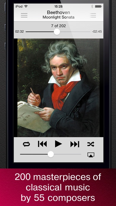 이 응용 프로그램은 세계 최고의 작곡가에 의한 큰 작곡 컬렉션 및 그들의 삶과 작품에 대한 이야기 해주는 백과사전을 결합하고 있습니다. 여기서 바흐, 베토벤, 모차르트, 헨델, 쇼팽 그리고 다른 많은 유명한 작곡가에 의한 최고의 작품이 수집되어 있습니다. 응용 프로그램의 주요 장점은 인터넷 연결 없이 클래식 음악을 들을 수 있다는 것입니다. 좋아하는 작곡을 한번만 다운로드 해도 당신이 지하철과 비행기 안에서도 언제든지 그 것을 들을 수 있을 것입니다. 그러므로 당신은 클래식의 마법 세계를 발견하기 준비되어 있다면, 우리의 응용 프로그램을 다운로드하셔서 세계 문화의 최고 작품을 즐기십시오! 특징 - 55작곡가에 의해 세계 클래식 음악의 걸작200 개 - 음악12 시간 이상, 훌륭한 사운드질 - 인터넷 서버에 접속하지 않고 모든 작곡을 다운로드하여 들으실 수 있습니다. - 편리한 플레이어,저자에 의해 작곡 분리 - 소개한 모든 작곡가에 대한 자세한 전기 - AirPlay, 배경재생, 원격제어, 재생목록에 대한 지원