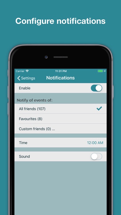 "When - anniversary remembrancer" is used to remind you about your friends' birthdays. It's very simple and has only necessary functionality: maintains a list of your friends and notifies you when their birthdays come. "When" does not send you any push notifications but uses the badge icon and local notifications to inform about birthdays. What the application does: - imports friends from Contacts, - imports friends from Facebook (only those who use this app), - allows editing your friends, - displays friends who had a birthday recently, will have it soon or have it today - uses badge icon or local notifications to notify about birthdays, - allows sending simple wishes (mail, sms, call) to the person who has a birthday today. If you have any comments, please feel free to contacts us at [email protected].