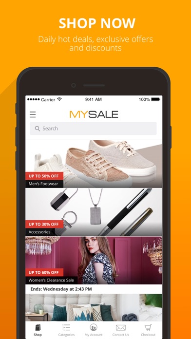 Mysale is a leading members-only online shopping club offering savings of up to 80% off. A virtual doorway to designer fashion, every day we host sales for the World’s top fashion brands for ladies, men and children, accessories, beauty and home. With Mysale, you no longer need to wait for the sales because the best brands are always on sale! The Mysale app provides a convenient way to access all of our sales in three simple steps from anywhere and never miss out on a deal again! Browse: Scroll through sales, categories and items then select, zoom and choose your favourite. Select: Our clear display shows available sizes and enables fast selection. Checkout: Quickly and securely checkout then return to browse for more... All sales are exclusive to Mysale members and last approximately 3 days. Stock numbers are limited and many items are not available through other retailers so make sure you get in quick!